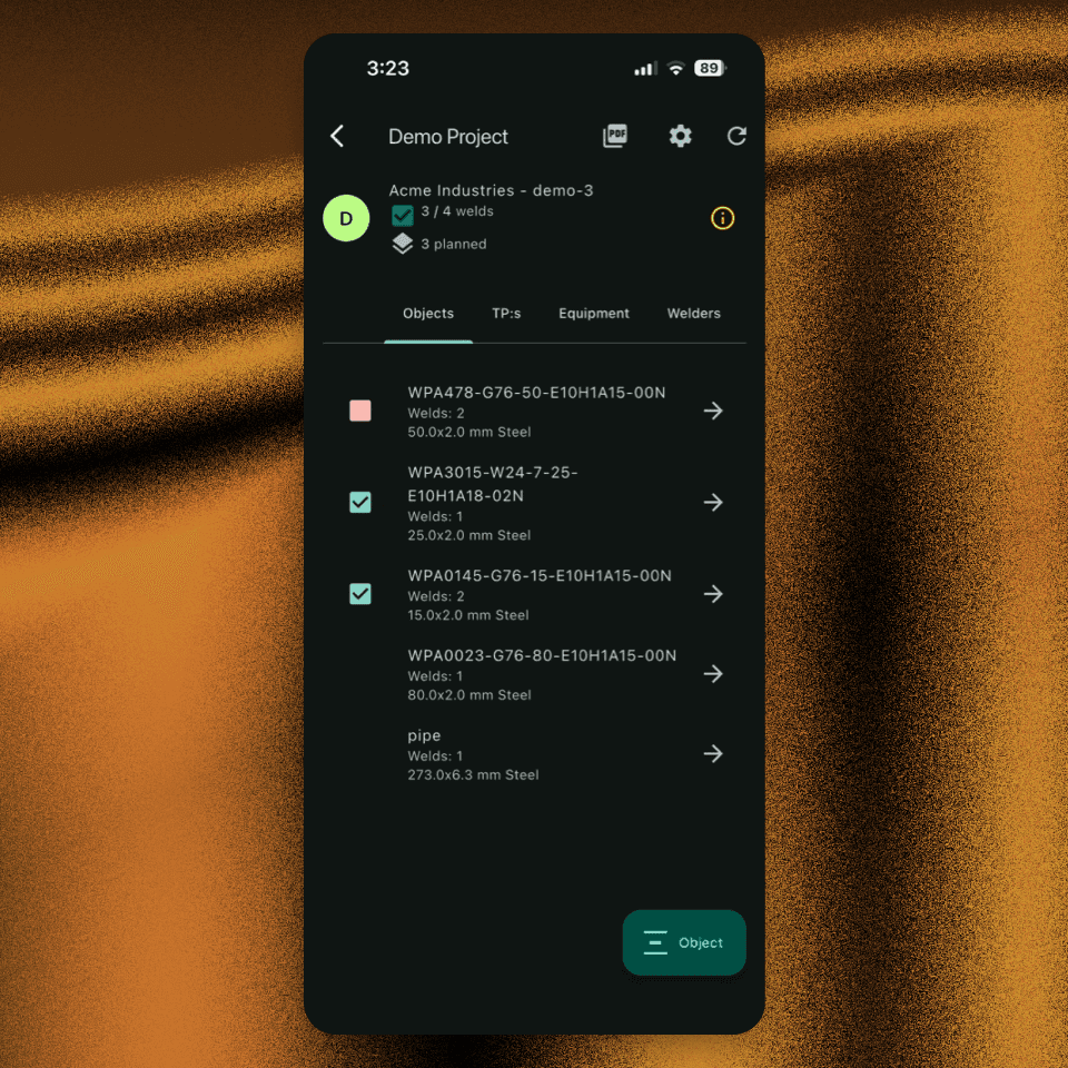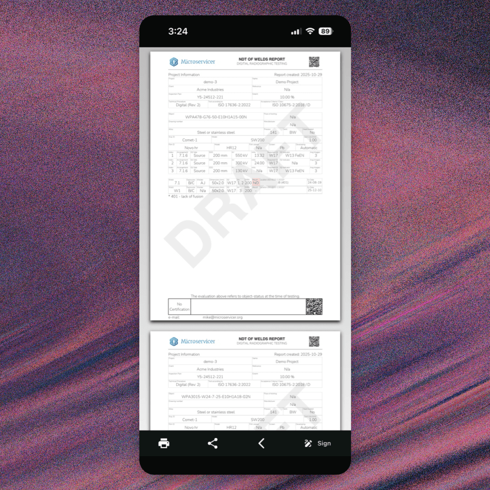 Generate ISO-ready reports with a tap.